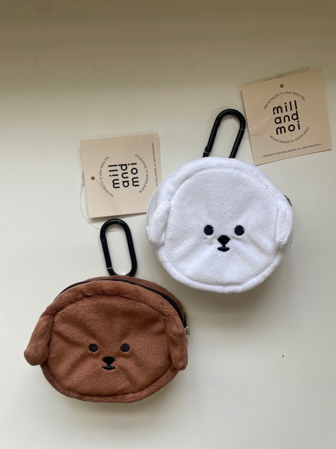 韓国の大人気ブランド mill and moiから、キュートなビションとプードルなフェイスのカラビナ付きポーチが登場!